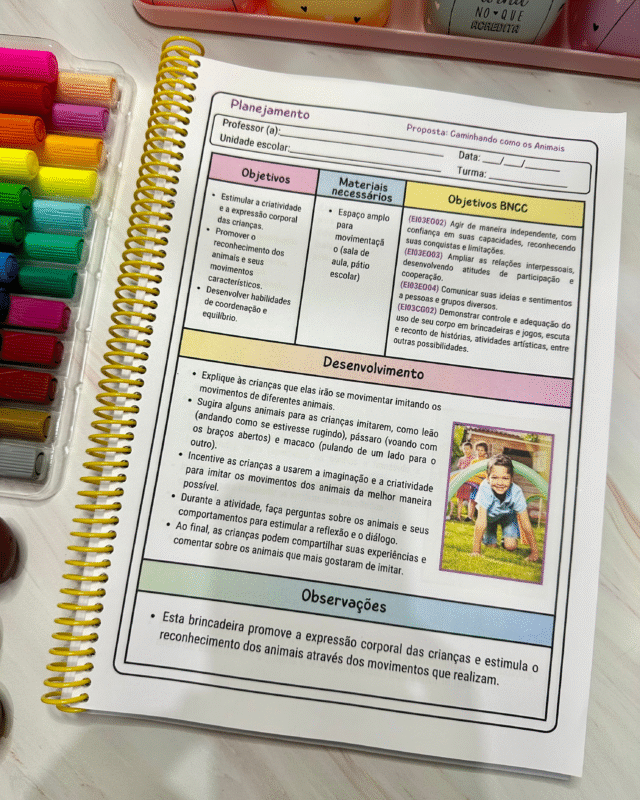 As sugestões presentes no material priorizam as vivências, experiências e o protagonismo da criança, respeitando os campos de experiência e promovendo uma aprendizagem significativa e prazerosa 🌱🧠