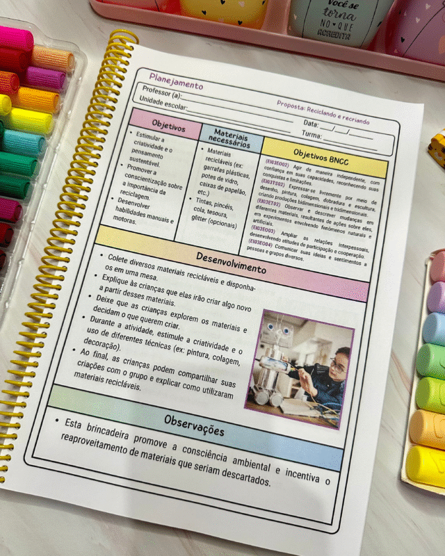 O material foi projetado para ser completamente flexível, permitindo que você adapte os planejamentos conforme as necessidades, interesses e ritmo da sua turma.