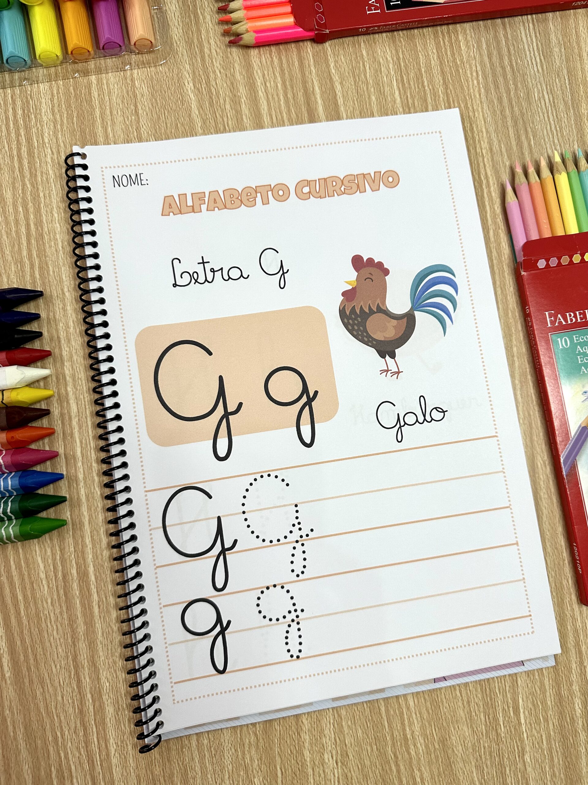 Material em PDF para trabalhar o traçado das letras cursivas de forma prática e progressiva com crianças em fase de alfabetização ✍️📚