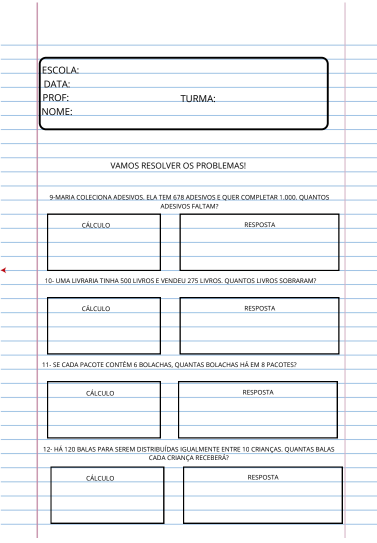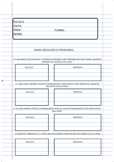 A Apostila de Problemas Matemáticos – 3º Ano foi desenvolvida para fortalecer o aprendizado da matemática por meio da resolução de situações-problema contextualizadas, aproximando os conteúdos do dia a dia dos alunos. 👧👦✨