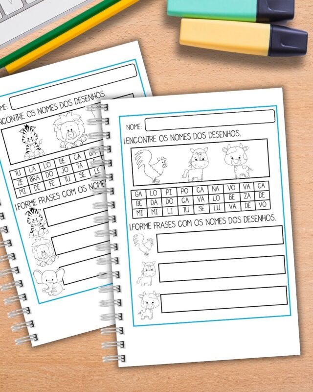 A Apostila Frases e Caça-Palavras é um material pedagógico interativo, ideal para crianças em fase de alfabetização. Por meio de atividades de caça-palavras ilustrados, a criança identifica os nomes dos objetos a partir dos desenhos e forma frases simples, tornando o aprendizado mais leve, divertido e significativo.