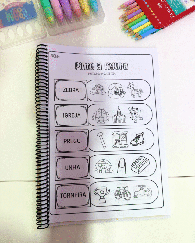 16 páginas de atividades paracolorir. Nessa proposta a criança precisa realizar a
