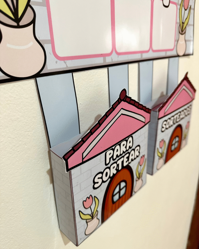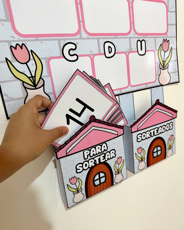 Vai com bolsinhos para organizar as fichas e envelope para encaixar a ficha do número do dia.