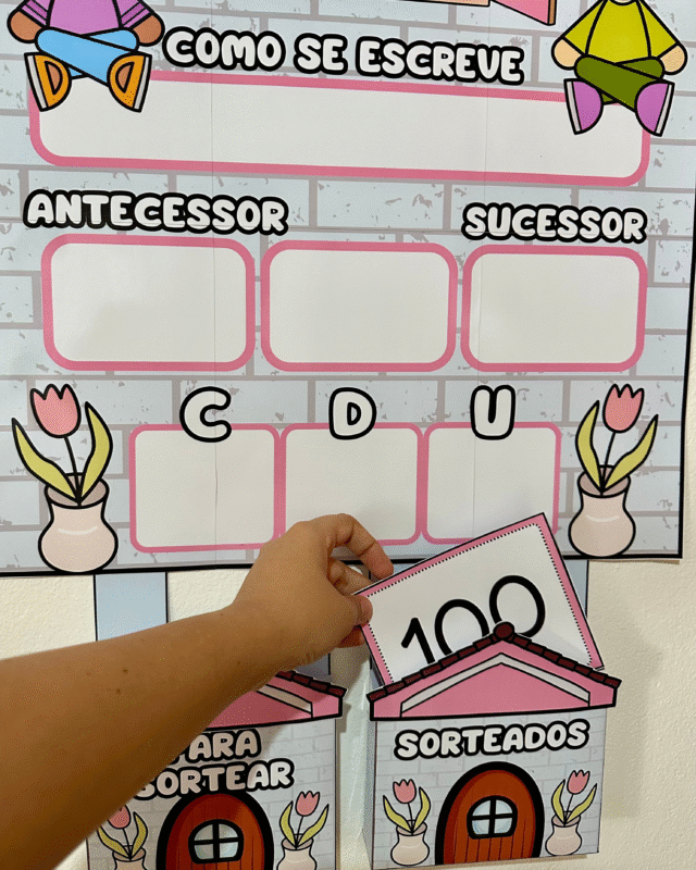 Recurso excelente para ser utilizado na rotina da sala, trabalhando conteúdos como: numerais de 0 a 100, sequência numérica, traçado dos números, escrita, antecessor e sucessor, unidade, dezena e centena.