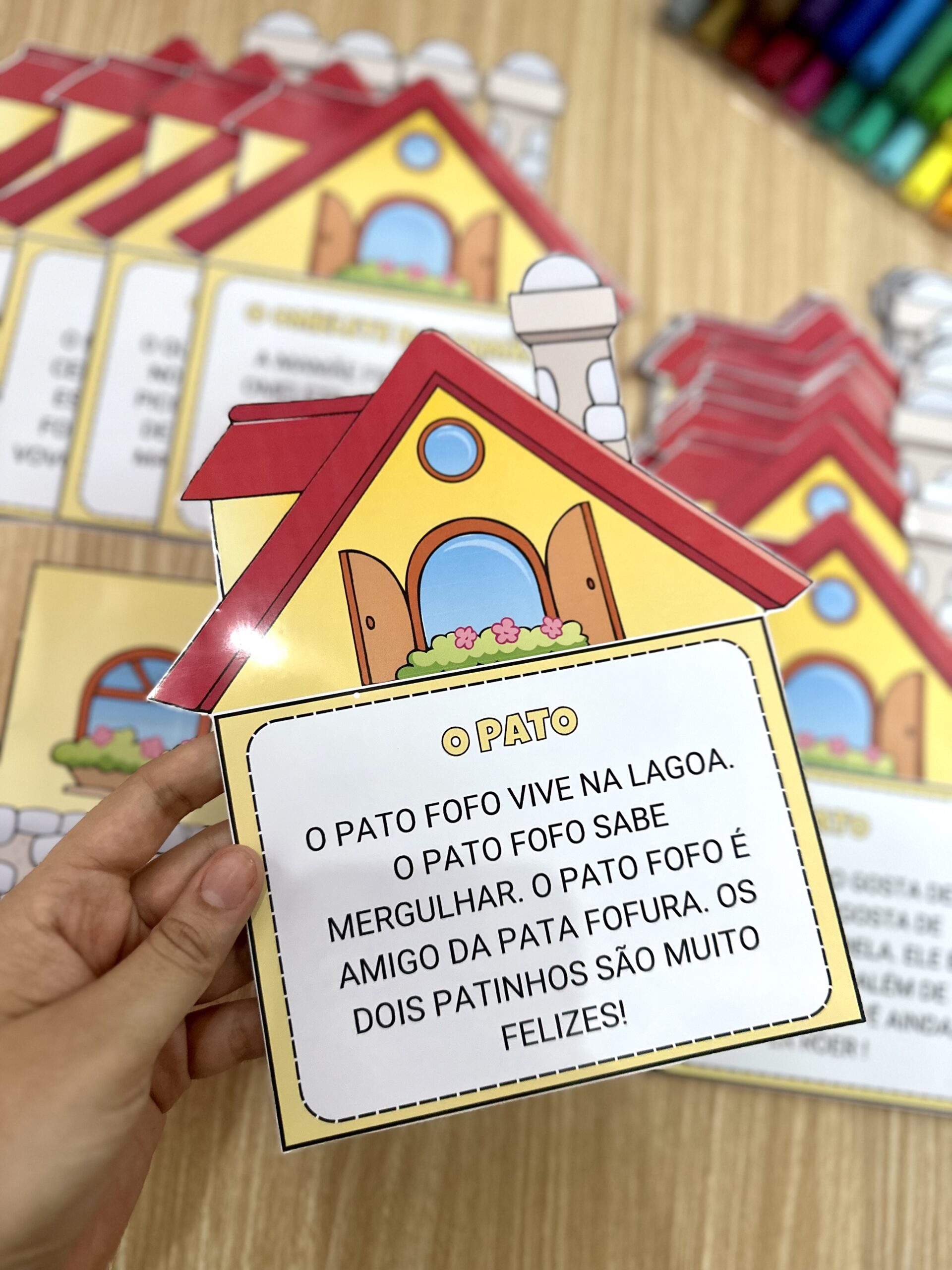 Arquivo Casinha da Leitura inclui 26 textos curtos para leitura, e uma caixinha para guardar o material.