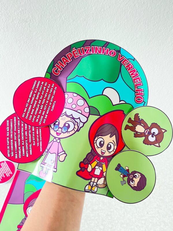 – Chapeuzinho Vermelho: você recebe o arquivo com a luva interativa da Chapeuzinho Vermelho e uma Sequência Didática com 13 Atividades para enriquecer o aprendizado e envolver as crianças de forma prática e lúdica.