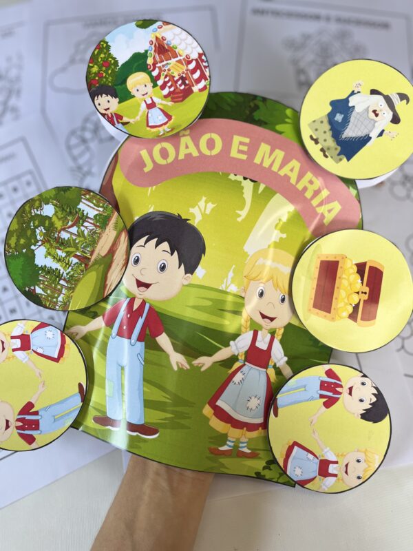 – João e Maria: você recebe o arquivo com a luva interativa João e Maria e Atividades caça-palavras, antecessor e sucessor, sequência numérica e desenho para colorir.