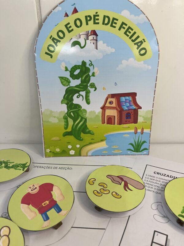 – João e o pé de feijão: você recebe o arquivo com a luva interativa João e o Pé de Feijão e atividades de Língua Portuguesa, Matemática e Arte.