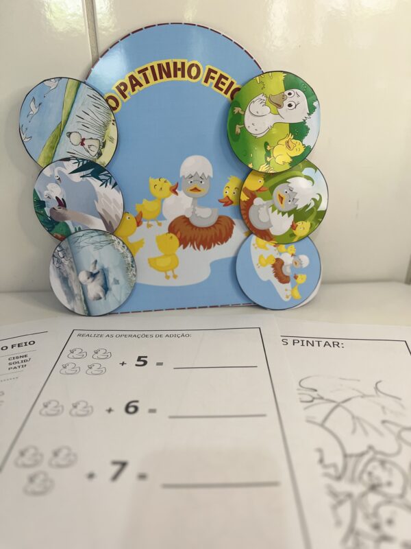 Patinho Feio: você recebe o arquivo com a luva interativa Patinho Feio e uma sequência didática contendo: Caça-Palavras, Atividade de Matemática e atividade de Arte.