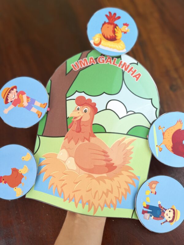 – Uma galinha: você recebe o arquivo com a luva interativa Uma Galinha e uma sequência didática com diversas atividades para os alunos.