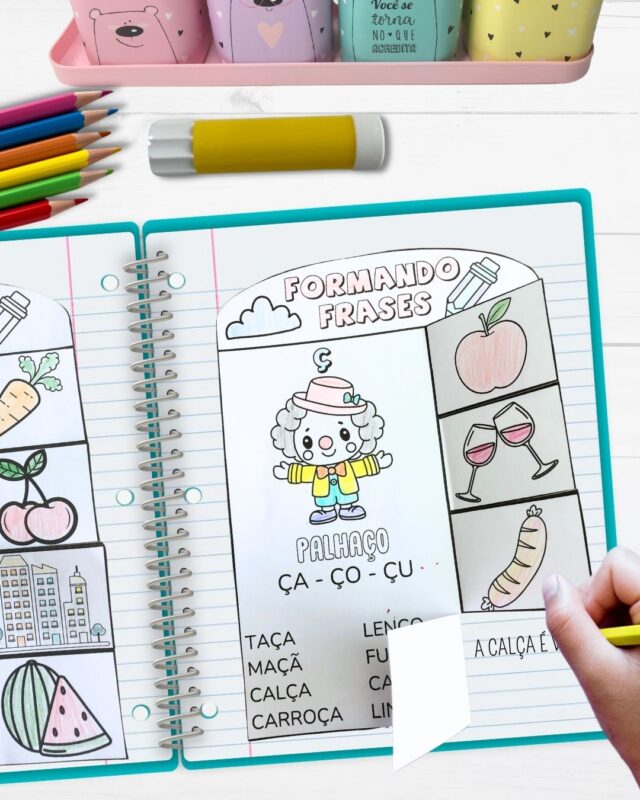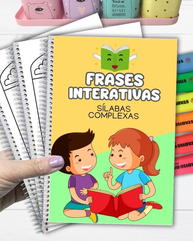 O material Frases Interativas Complexas foi desenvolvido especialmente para crianças em fase de alfabetização, auxiliando no trabalho com sílabas complexas, produção de frases e ampliação do vocabulário.