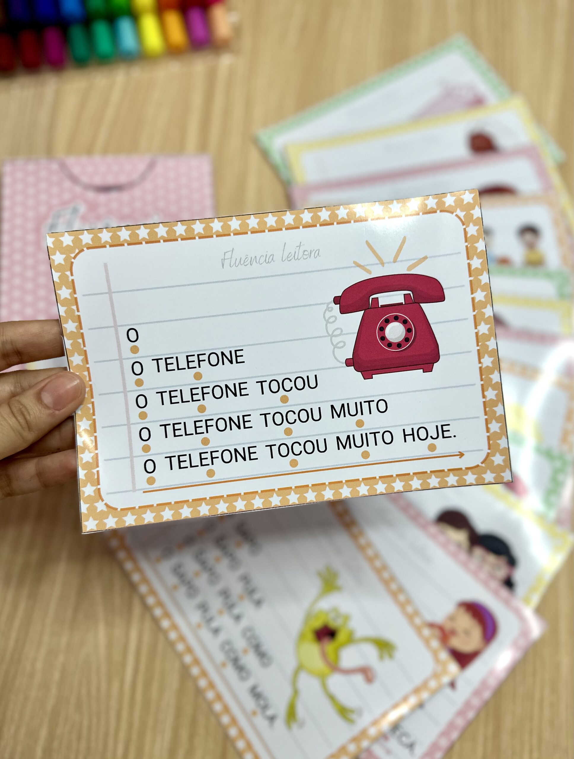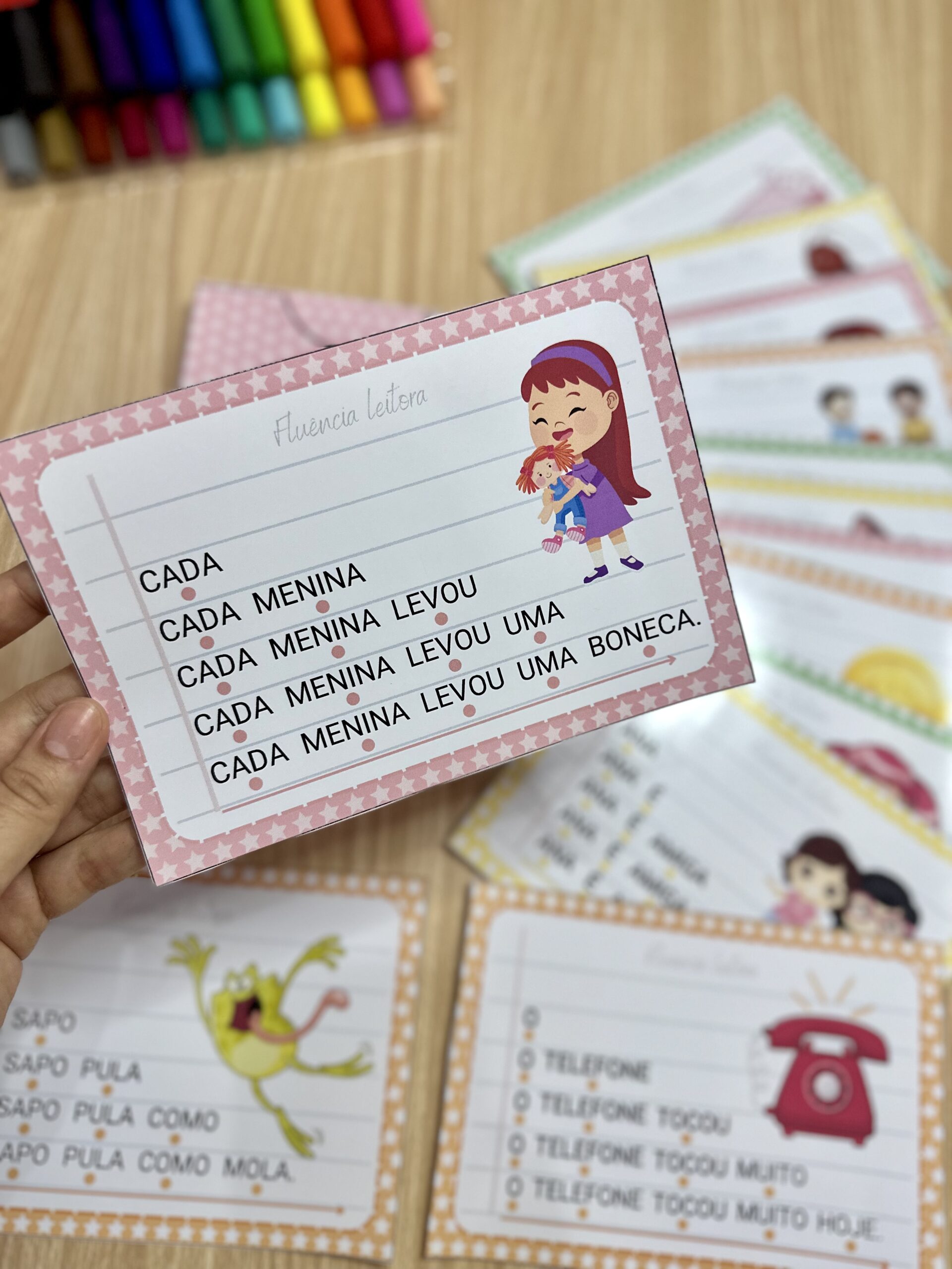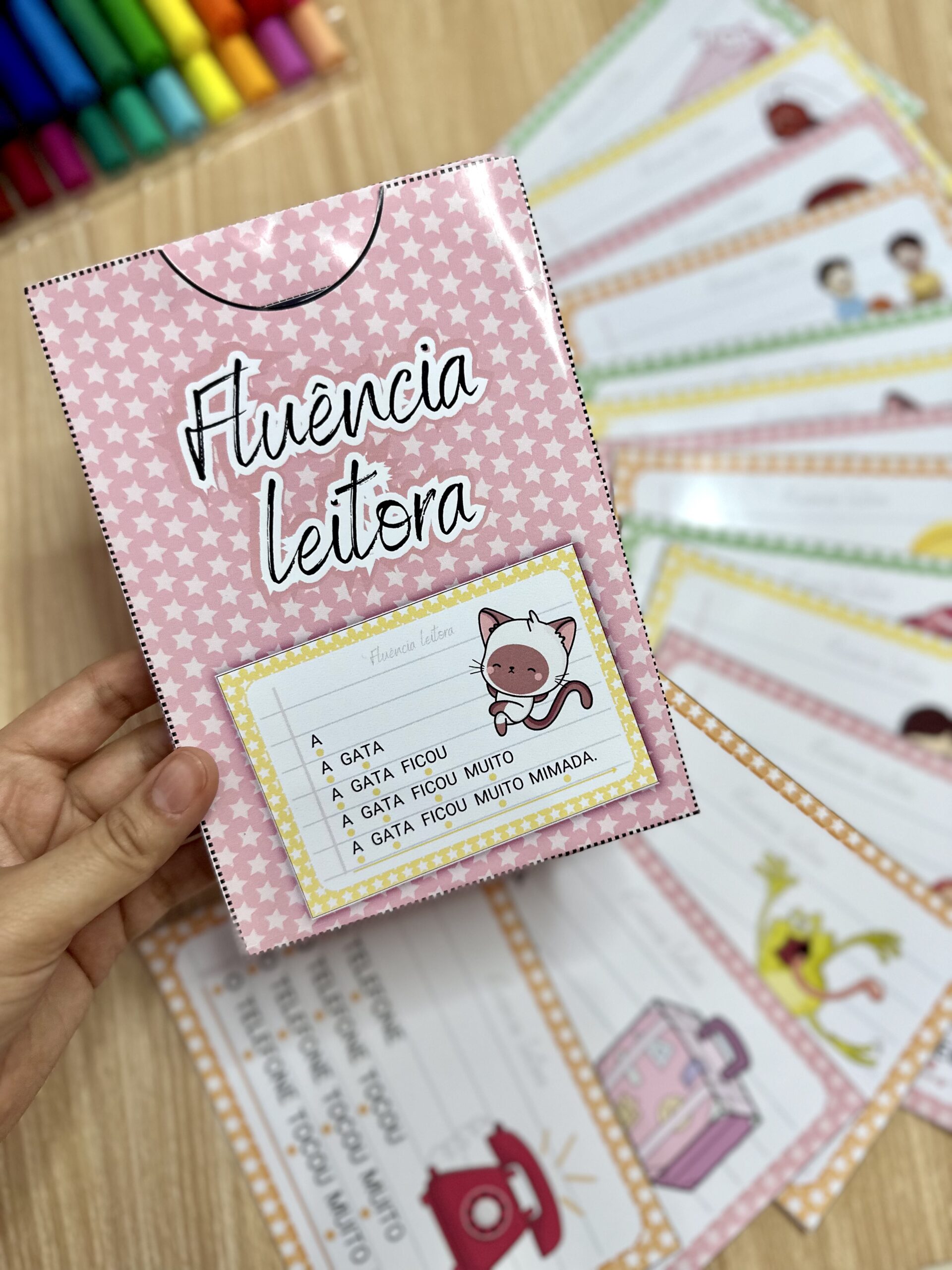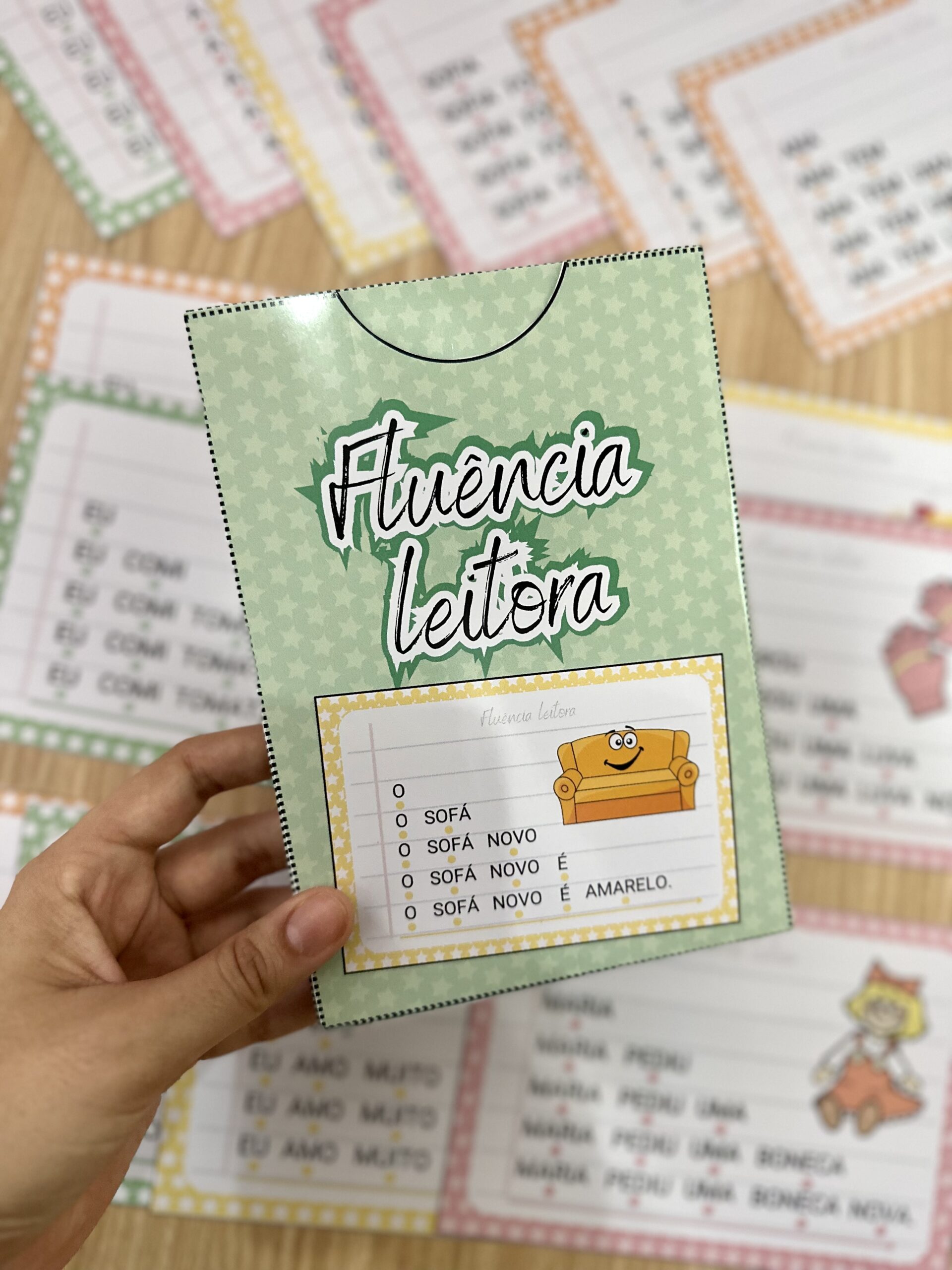 Fluência Leitora: inclui 14 fichas de leitura com palavras simples, para desenvolver a fluência leitora em crianças em fase de alfabetização. Esse método desenvolve a capacidade de ler um texto com agilidade, precisão e com expressão adequada, através do aumento gradativo das palavras a serem lidas em uma frase, o que faz com que a criança consiga ler de forma autônoma e segura.