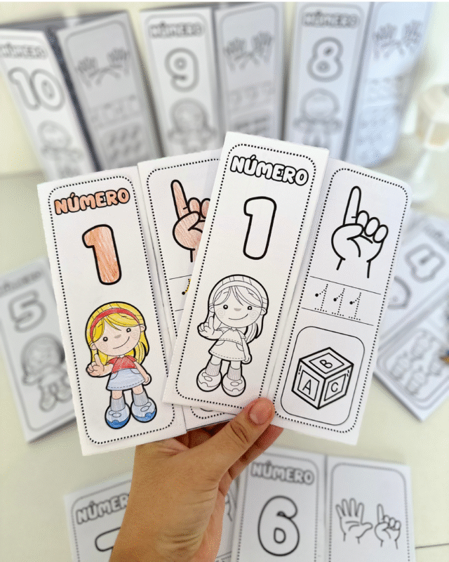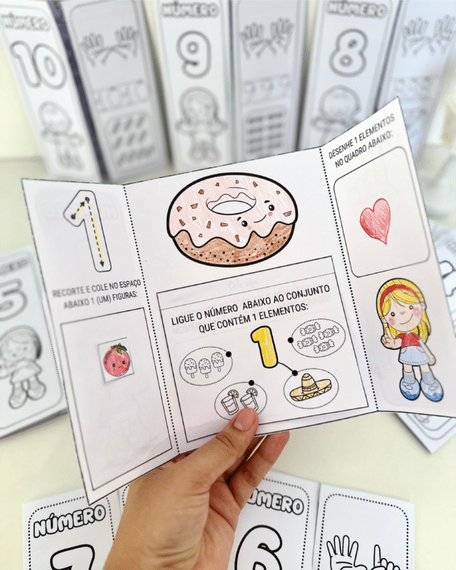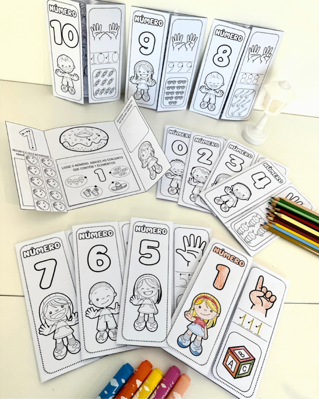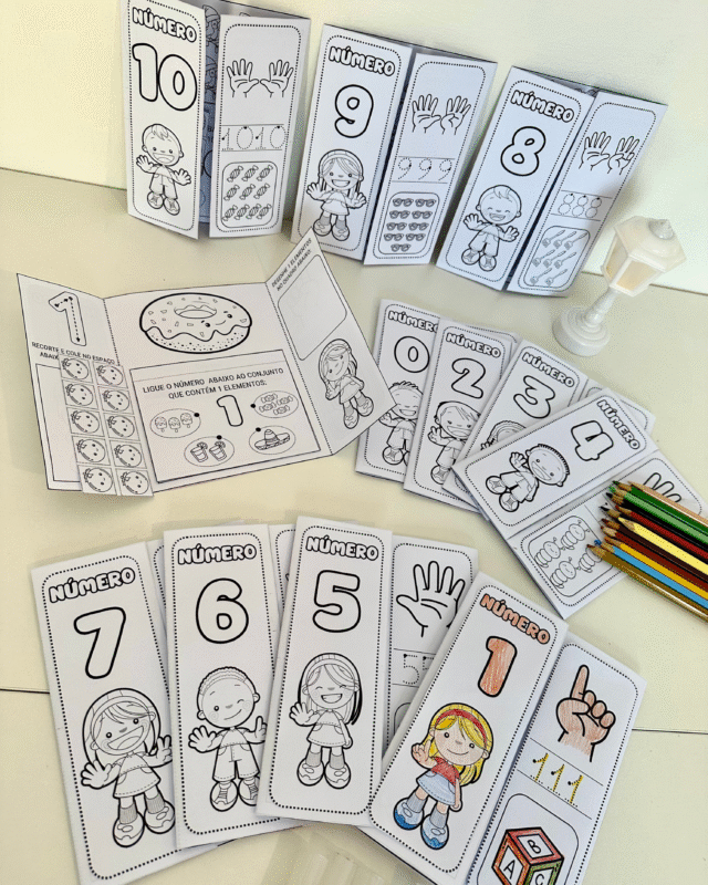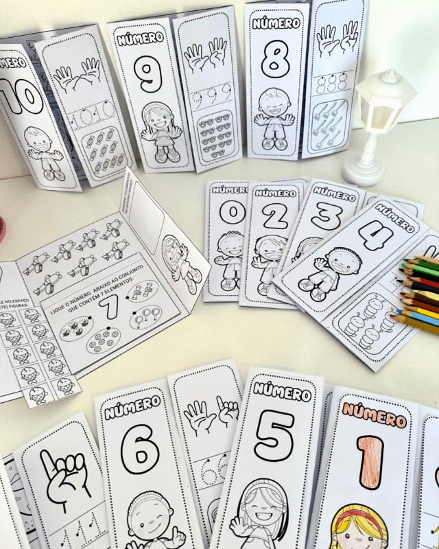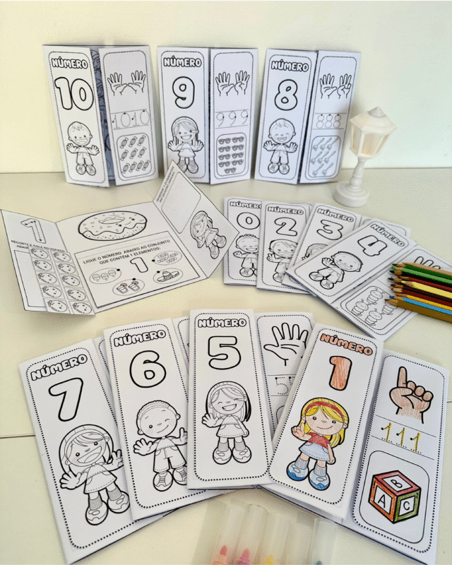 O material é enviado em PDF pronto para impressão, com ilustrações para colorir, permitindo que a criança participe ativamente do processo de aprendizagem por meio da montagem, pintura e exploração dos números ✂️🖍️
