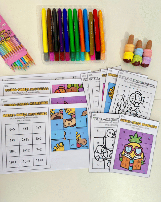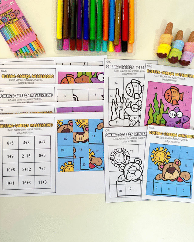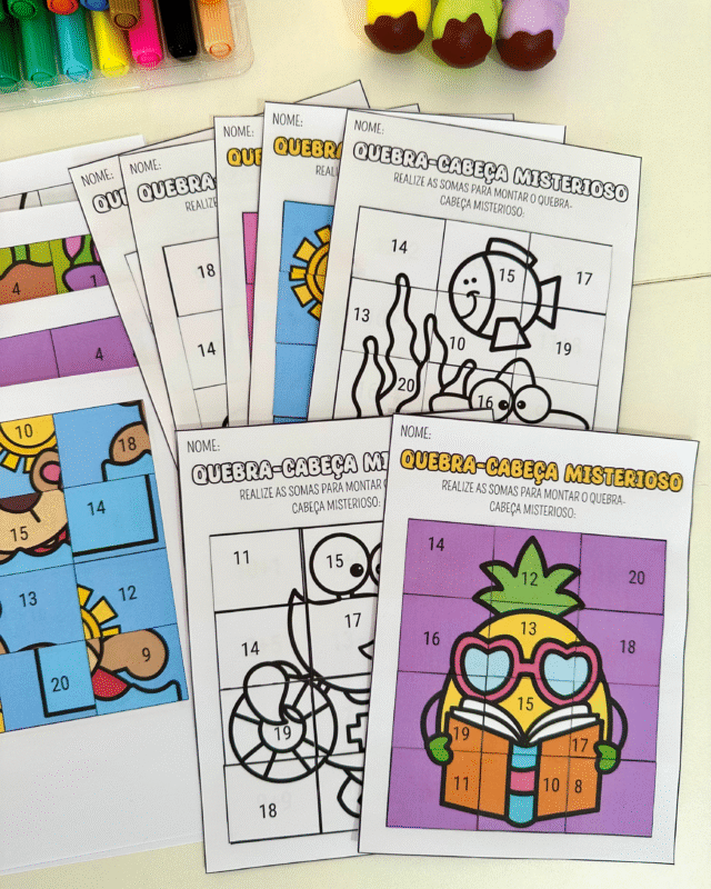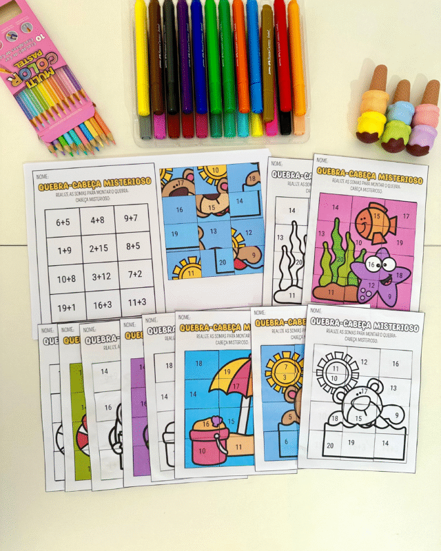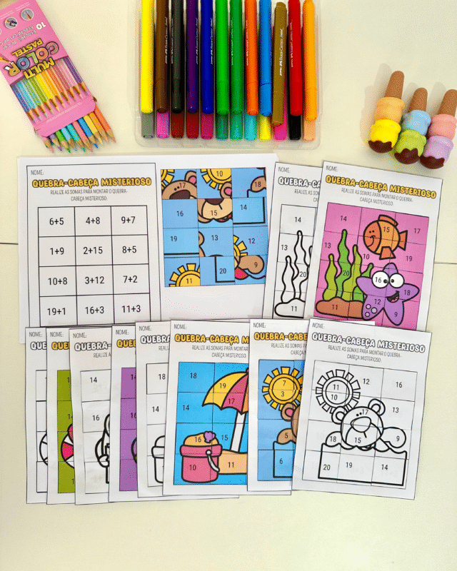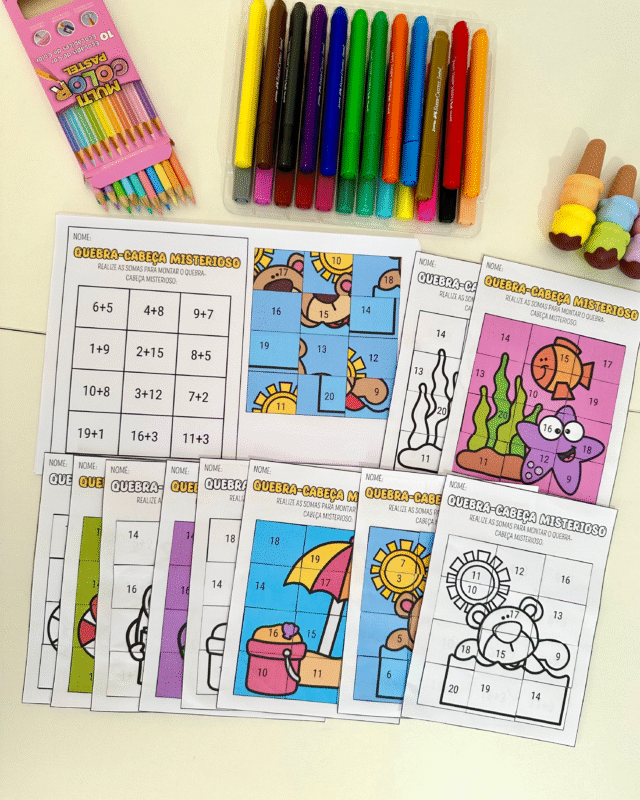 No total são 10 modelos de quebra-cabeça na opção colorida e 10 na opção para colorir.