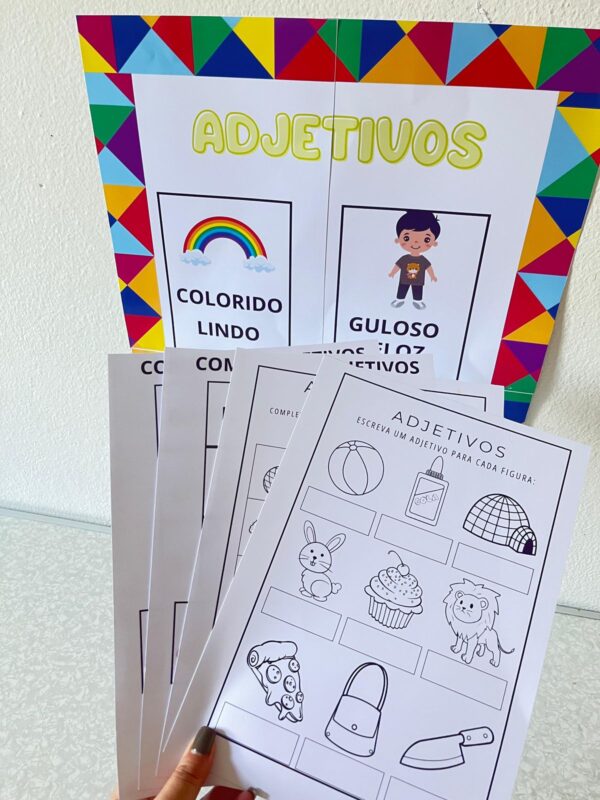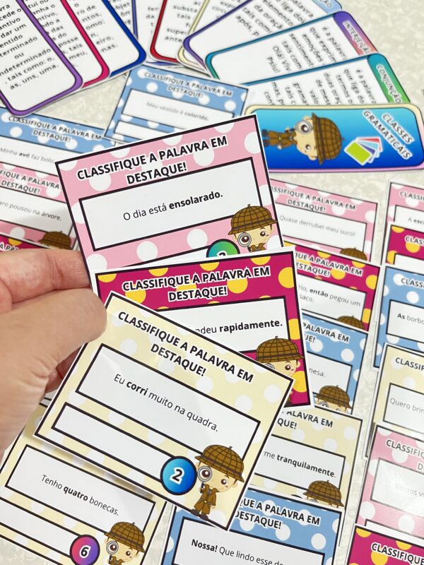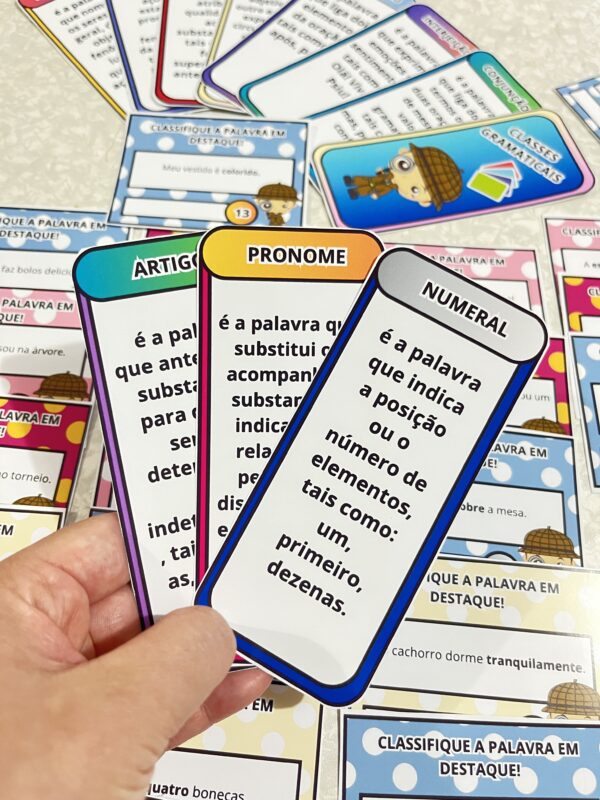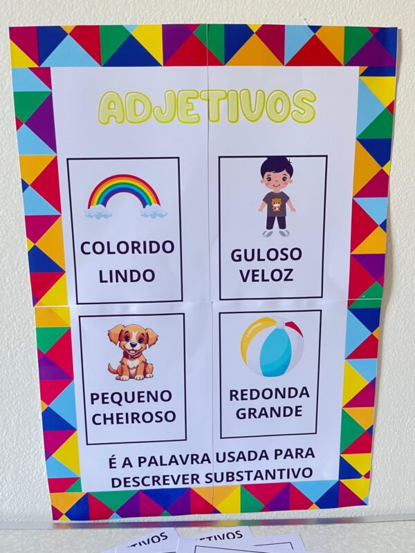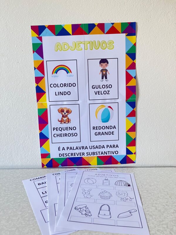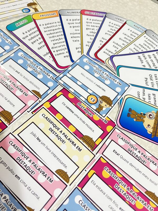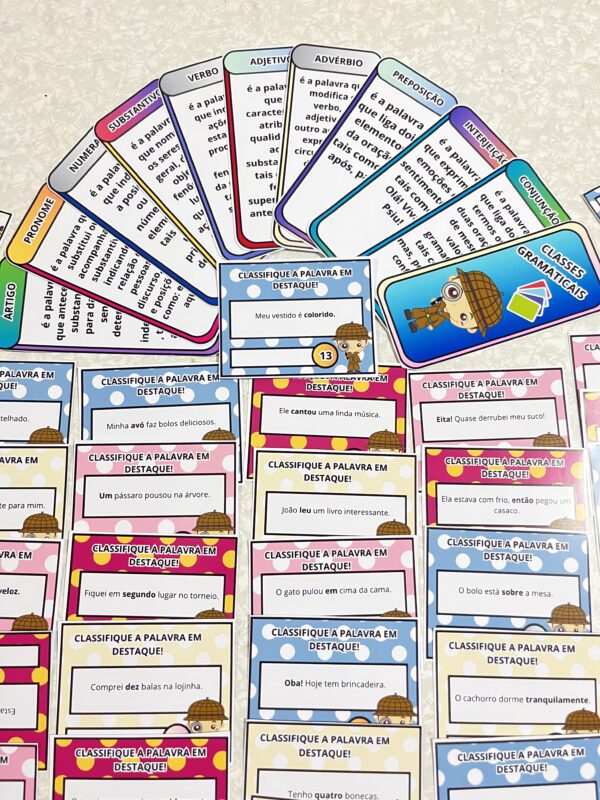 👉 A criança aprende classificando, praticando e visualizando cada classe gramatical.